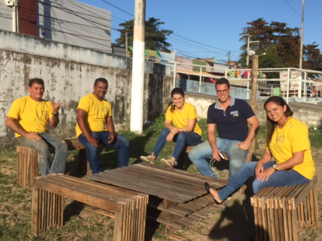 Além disso, a oficina de corte masculino e de urbanismo tático. Na oficina de urbanismo tático, primeiro a construção de mapas coletivos par definição dos locais de intervenção, em seguida uma breve apresentação sobre Life Cycle Canvas, uma ferramenta de planejamento muito simples de aplicar. Para esta oficina conseguimos doações de tintas com a Comjol e paletes, e após a apresentação a comunida aprendeu a pintar paredes, pitando um muro em frente ao ginásio onde ocorreu o evento e também aprendeu a construir bancos e mesas utilizando paletes. Ao final, os mobiliário construído foi levado para os locais no bairro escolhidos pela comunidade.